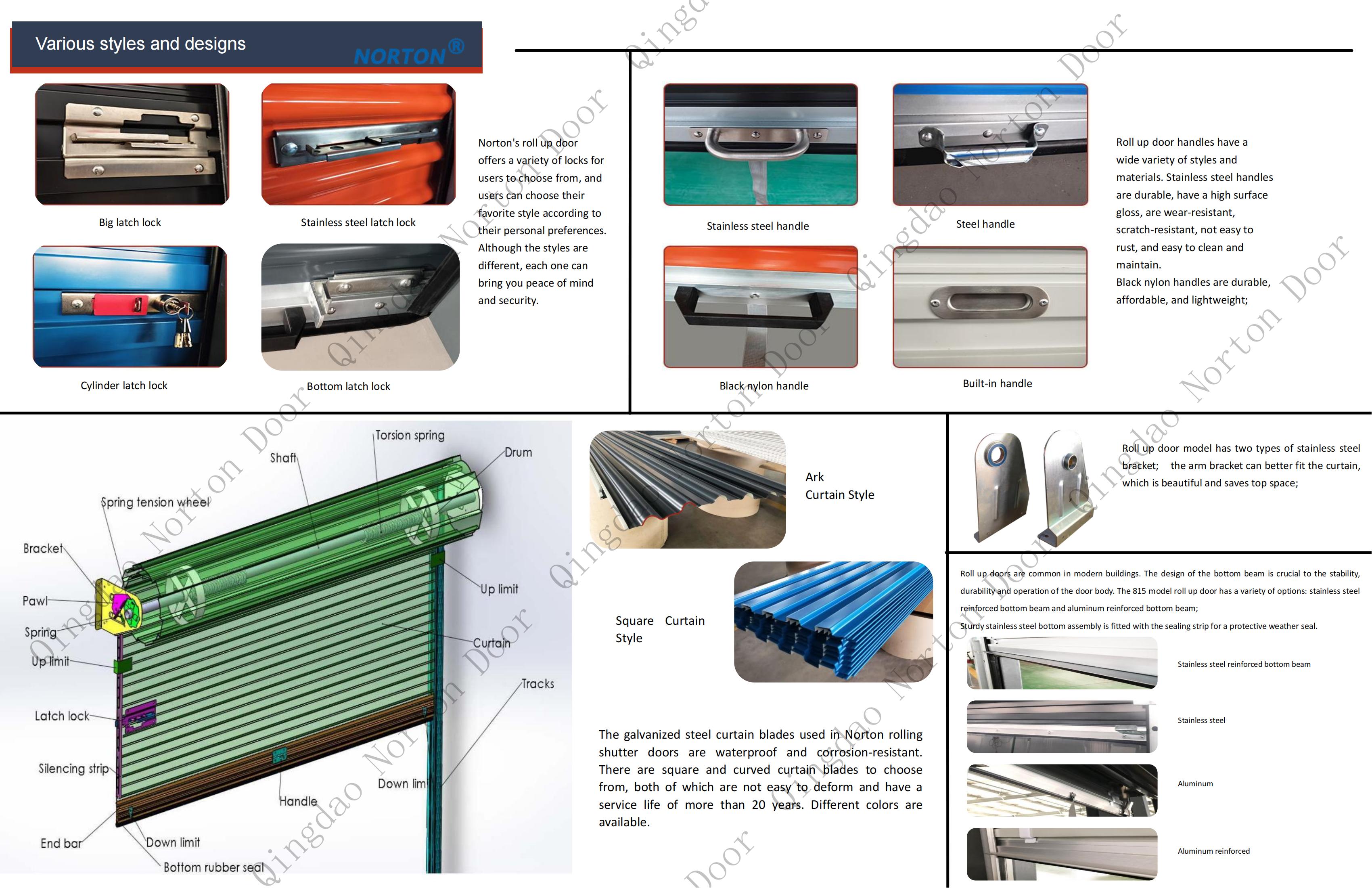 Vlastná manuálna manuálna vlastná samovratná oceľ v rolovacích dverách Qingdao Norton Zmiešajte technológiu automatizácie s vysokokvalitnou oceľou, ktorá ponúka pevnosť, odolnosť proti korózii a toleranciu tlaku vetra pre stabilitu a bezpečnosť. Novo vyvinutý ručne riadený reťazový doplnok uľahčuje ľahké zdvíhanie a zatváranie. Tieto dvere, ktoré sú prispôsobené rozmerom otvárania dverí používateľov, zaisťujú perfektné a optimálne tesnenie. Vďaka funkciám, ako sú protimperi, odolnosť proti poveternostným vplyvom (dážď, vlhkosť, studená, slnko) a zvuková izolácia, uspokojujú rôzne environmentálne potreby, udržiavajú vynikajúci vzhľad a výkon v priebehu času.